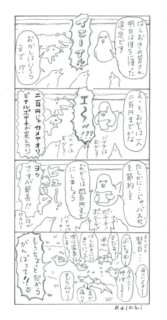 漫画おやきさん 楽しい遠足 〜 The Price of Potato Chips 2025-06-10 / お寿司を配達するおにぎりさん Onigiri Delivers Sushi 水玉ヘビの心 Heart of Polkadot Snake