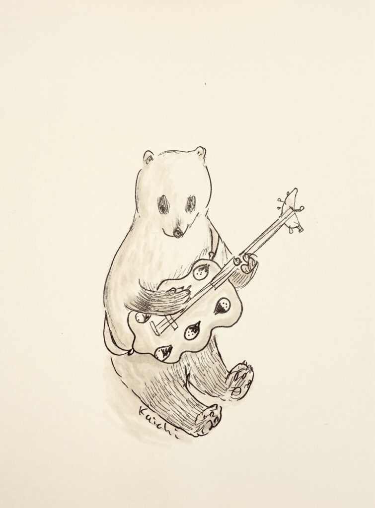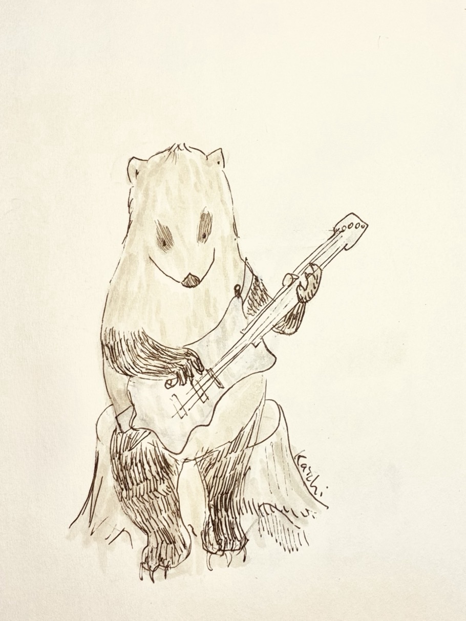 漫画おやきさん {78} ザ・むじなズ リーダー・バッジ 2025-10-09 / ギターを借りて練習を始めたバッジ 伝説のギター・SHIBAGURIを使用していた頃のバッジ ザ・むじなズとは? ザ・むじなズは、旧岬駅にできたブックカフェ『Cafeせんぷーき』の開店記念パーティーに向けて再結成した自称ビジュアル系バンド。再結成にあたり、ボーカルにSAYURI(ツリー・シンガーズ35期生)、清流系ベーシスト銀(元『獺祭ズ』)を新メンバーに迎えた。パーティーでは新曲が披露される予定。 {77} 河辺のお点前 Climbing Pandea