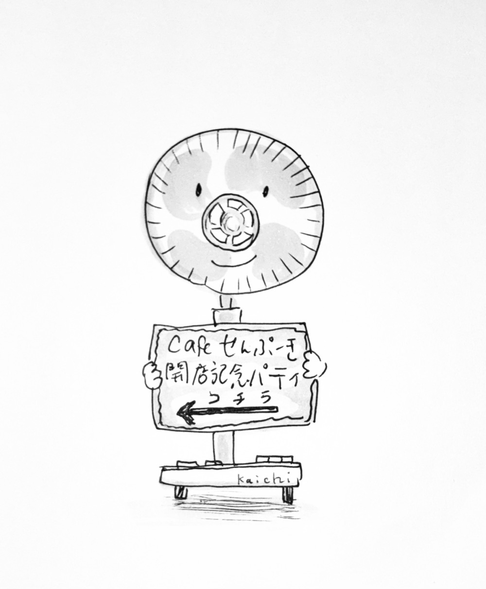 漫画おやきさん パーティのために道案内のボードを製作したせんぷうきさん 2025-11-03 / ウェルカム係のせんぷうきさん、案内板を作成 Cafeせんぷーき開店記念パーティに向けて余興の練習をする忠次郎 ポットさんひと休み
